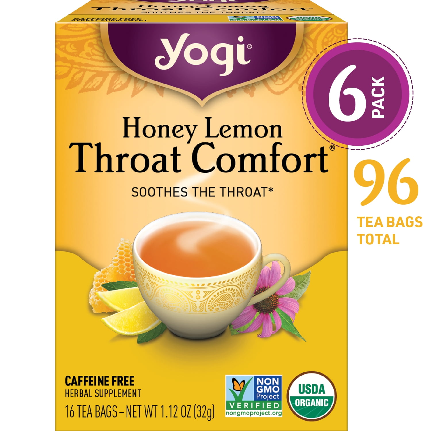 Yogi Tea Honey Lemon Throat Comfort 4 Pack Soothes The Throat With Slippery Elm Bark And Traditional Herbs Caffeine Free 64 Organic Herbal Tea Bags Walmart Com